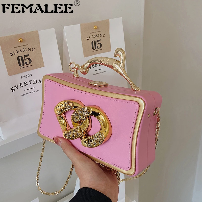 2022 роскошная женская маленькая сумка через плечо с цепочкой, Брендовые женские сумки с металлическими леопардовыми ручками и кошельки, кла...