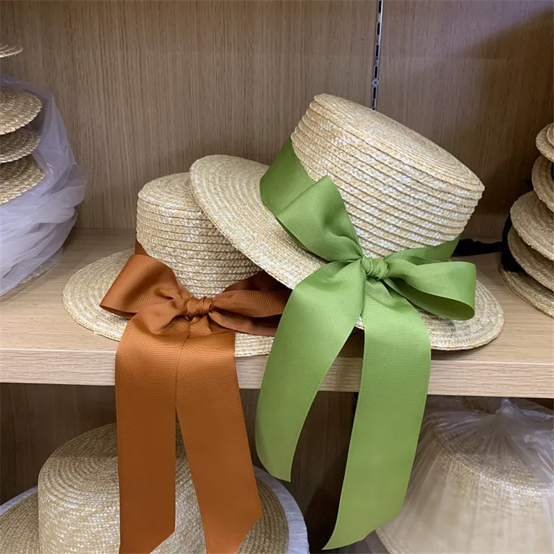 202203-may-niu летняя Праздничная соломенная шляпа ручной работы с зеленой лентой и бантом для отдыха, женская пляжная шляпа для вечеринок, женска...