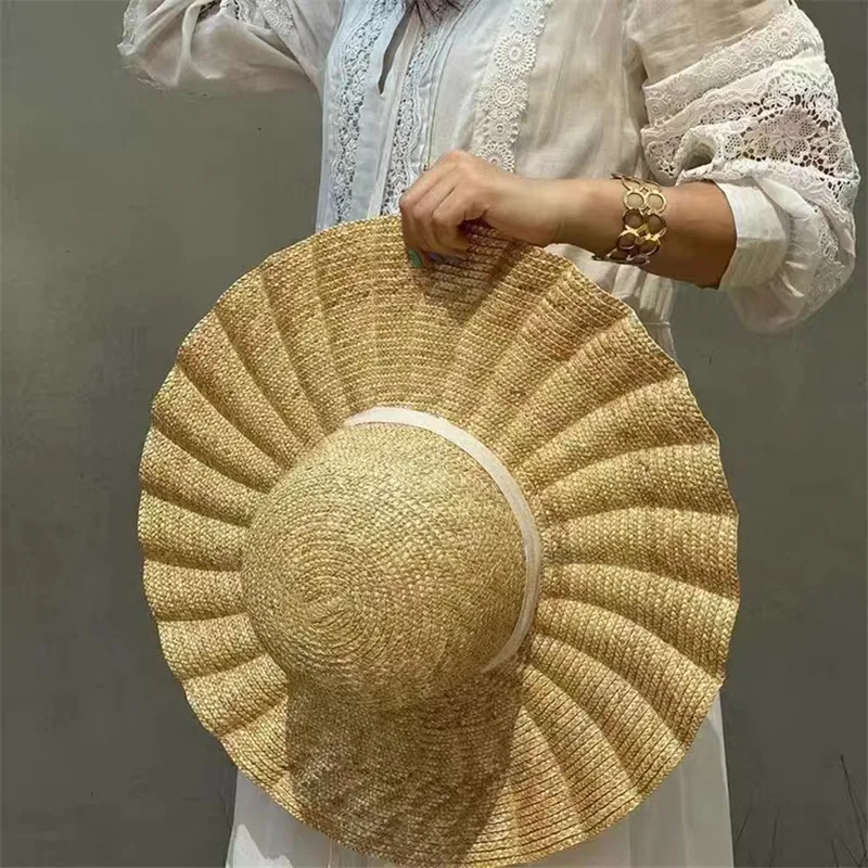 202207-2508644 летняя Прямая поставка шикарная пляжная шляпа для отдыха много цветов с широкими полями из бумажной травы Женская Солнцезащитная ш...