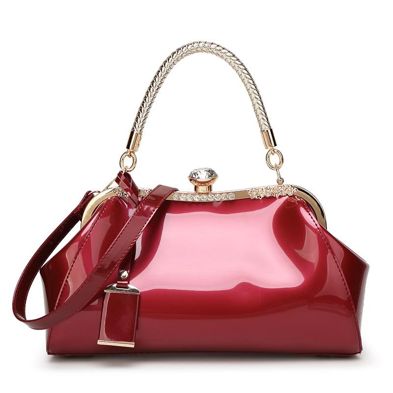 2023 Блестящая лаковая женская сумочка - Европейский и американский модный тренд, Свадебная, Вечерняя, Сумка на плечо и через плечо вино красного