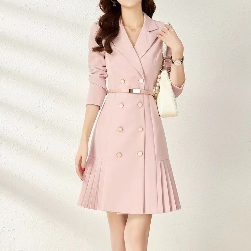 2023 Весна и Осень Модный Темперамент Длинный Рукав K-стиль Рабочая Юбка Французский Миноритарный Приталенный Плиссированный Деловой Костюм и Платье Pink S