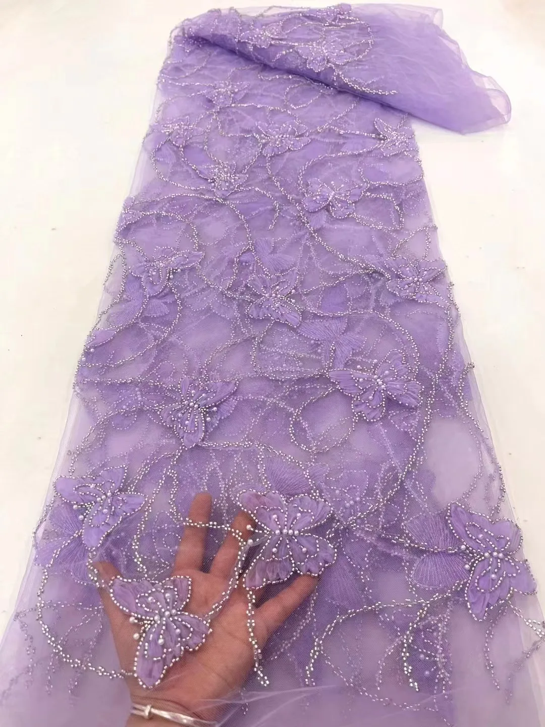 2023 Высококачественная африканская кружевная ткань, флюоресцентная французская Роскошная бусина, 3D вышитая Тюлевая кружевная ткань для шит...