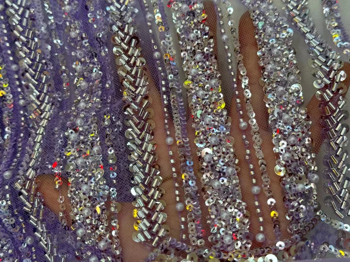 2023 Европейская тяжелая промышленность, вышитые кружева в полоску с бусинами и блестками, Высококачественная модная вечерняя ткань для платья/5 ярдов