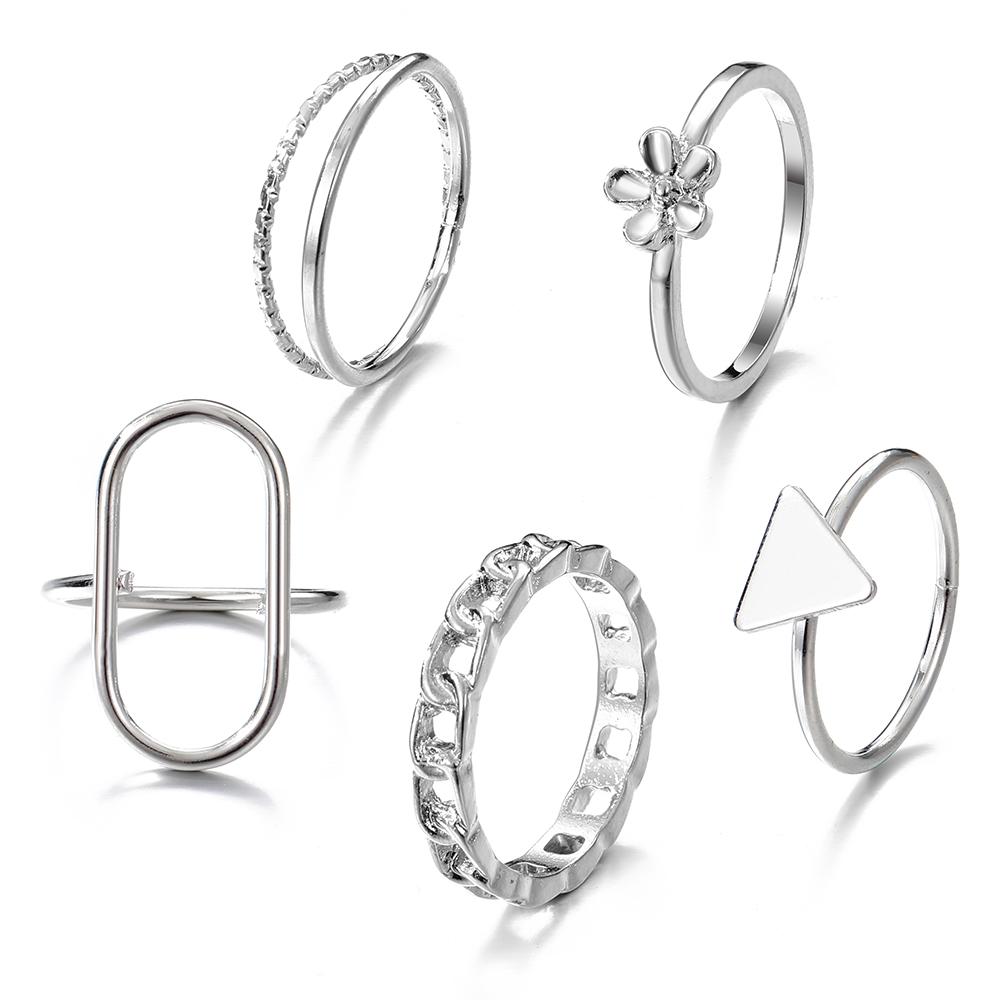 2023 Корейское простое женское кольцо для ночного клуба, вечерние кольца с геометрической резьбой, студенческое кольцо для девочек, треугольное полое кольцо, комплект комбинаций серебряный