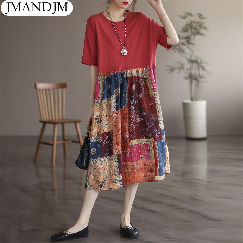 2023 Летнее платье-футболка больших размеров, женское винтажное свободное повседневное платье с принтом, платье с цветочным принтом, пляжные повседневные платья, однотонное женское с круглым вырезом