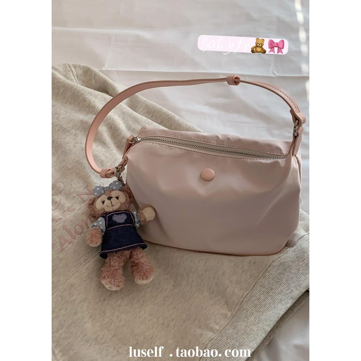 2023 Розовая нейлоновая сумка подмышкой в корейском стиле: Легкая, компактная, высококачественная женская сумка через плечо 24x17x11 cm детские розовый