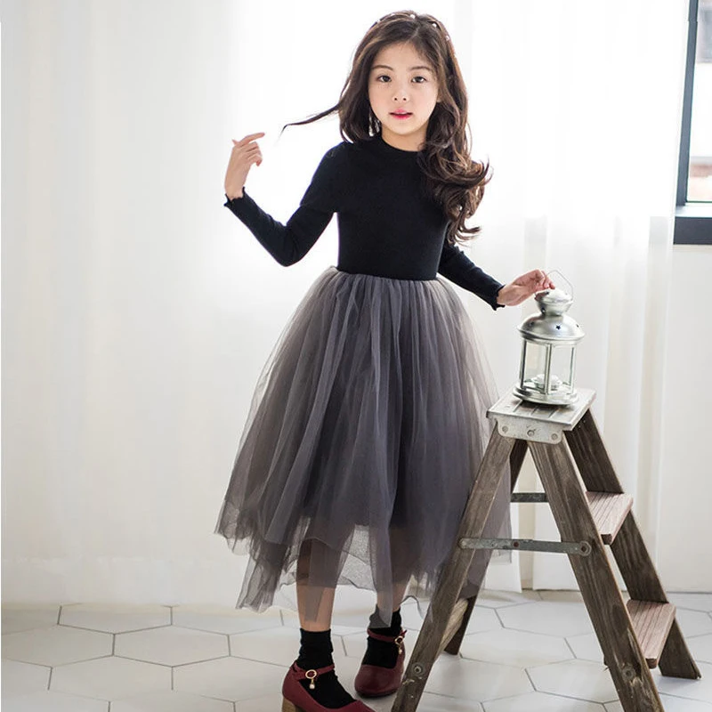 2023 весенне-осеннее платье для девочек, корейское сетчатое модное платье с длинными рукавами для маленькой принцессы, подарки на день рождения, новая детская одежда