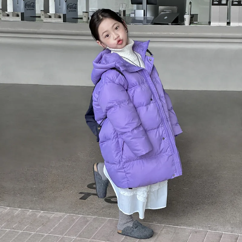 2023 зимняя длинная Повседневная пуховая куртка с капюшоном для девочек и мальчиков, Детское пальто, верхняя одежда, три цвета