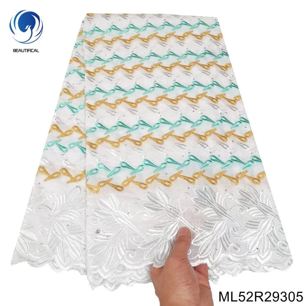 2023 классическая элегантная вышитая модель нигерийская швейцарская вуаль кружева хлопок 5 ярдов для стандартного платья ML52R293