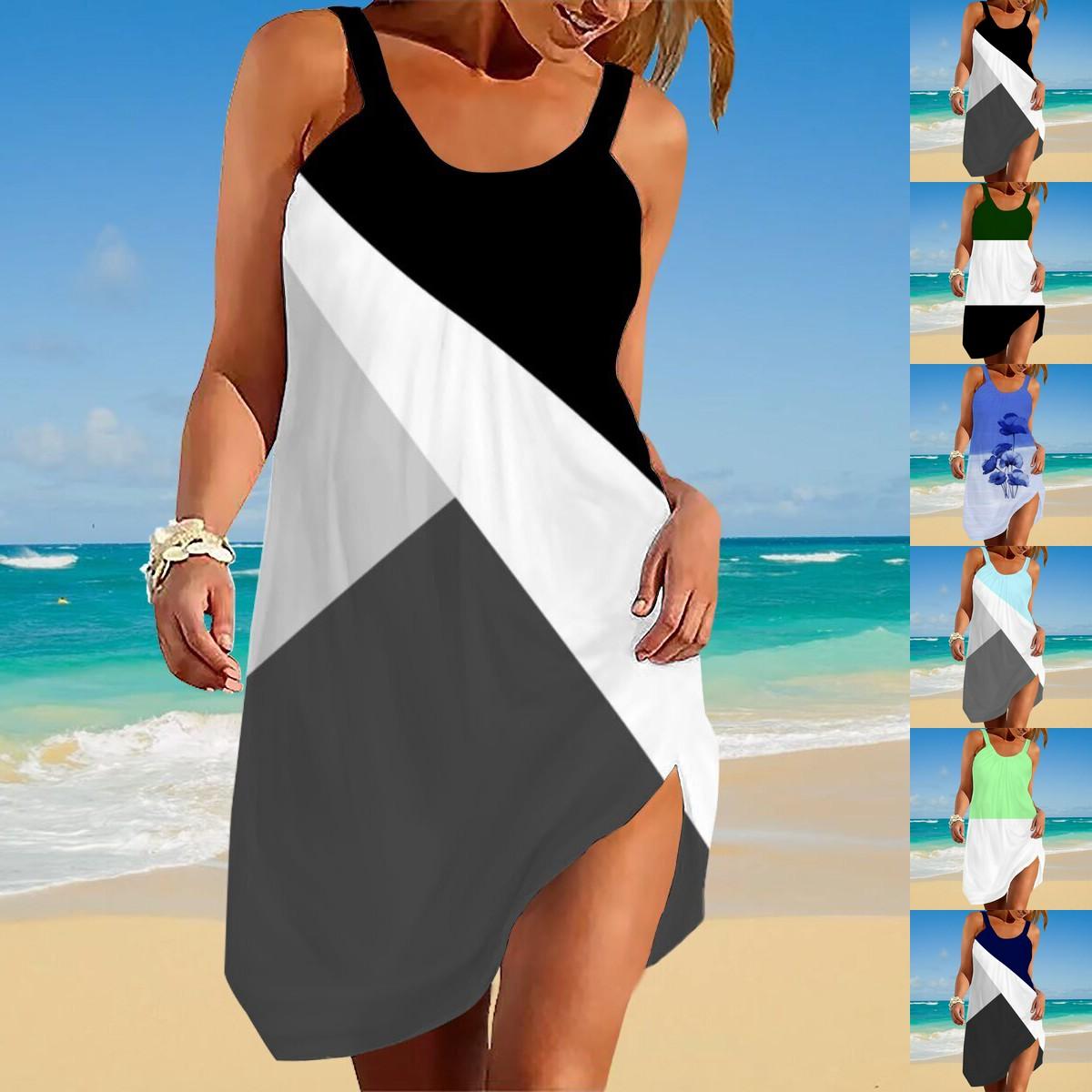 2023 летнее новое модное женское платье-бретелька с цветочным принтом, повседневное платье больших размеров S-2XL