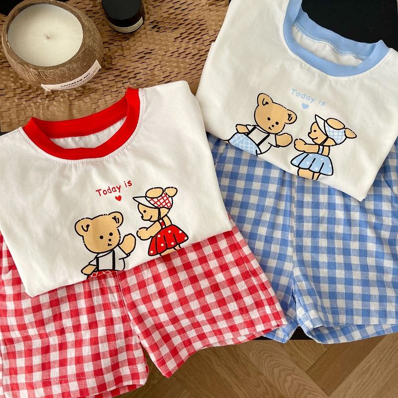 2023 летняя детская одежда для детей 0-6 лет, футболка без рукавов с героями мультфильмов для мальчиков и девочек, топ + шорты в клетку, комплект одежды из 2 предметов