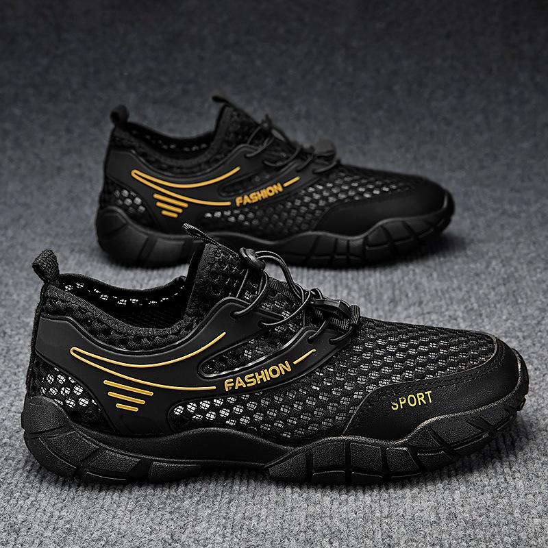 2023 летняя новая мужская верхняя одежда, дышащая и непроницаемая для запаха сетчатая полые туфли Baotou, уличная пляжная обувь с отверстиями 44 чёрный