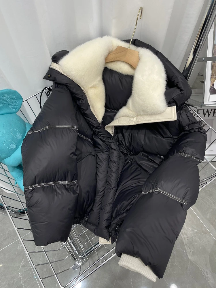 2023 натуральное меховое пальто с воротником из натурального меха норки, толстая теплая куртка с капюшоном и гусиным пухом, верхняя одежда, зимняя куртка, уличная одежда, новинка
