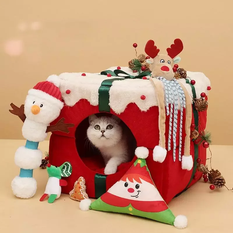 2023 новая Маленькая рождественская кровать для домашних животных, съемная моющаяся мягкая теплая кровать для кошки, милая самосогревающаяс...