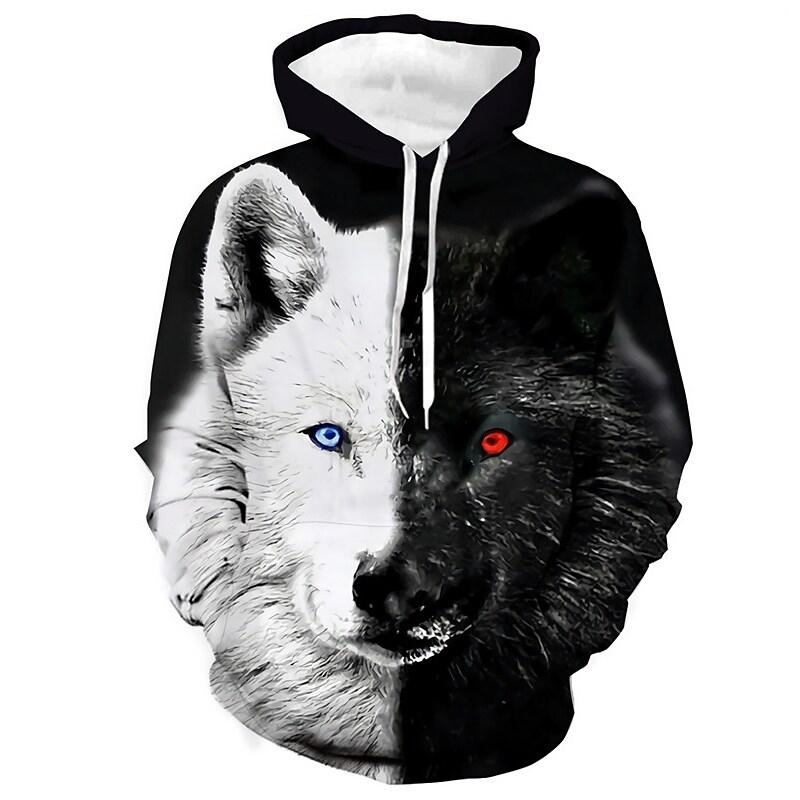2023 популярная черно-белая мужская толстовка с принтом волка и модной 3D-печатью для животных, спортивная рубашка на каждый день