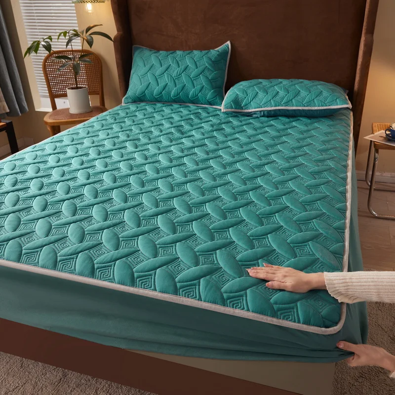 2023 промытая хлопковая стеганая натяжная простыня, однотонный резиновый теплый чехол на матрас, лоскутное утолщенное постельное белье с дел...