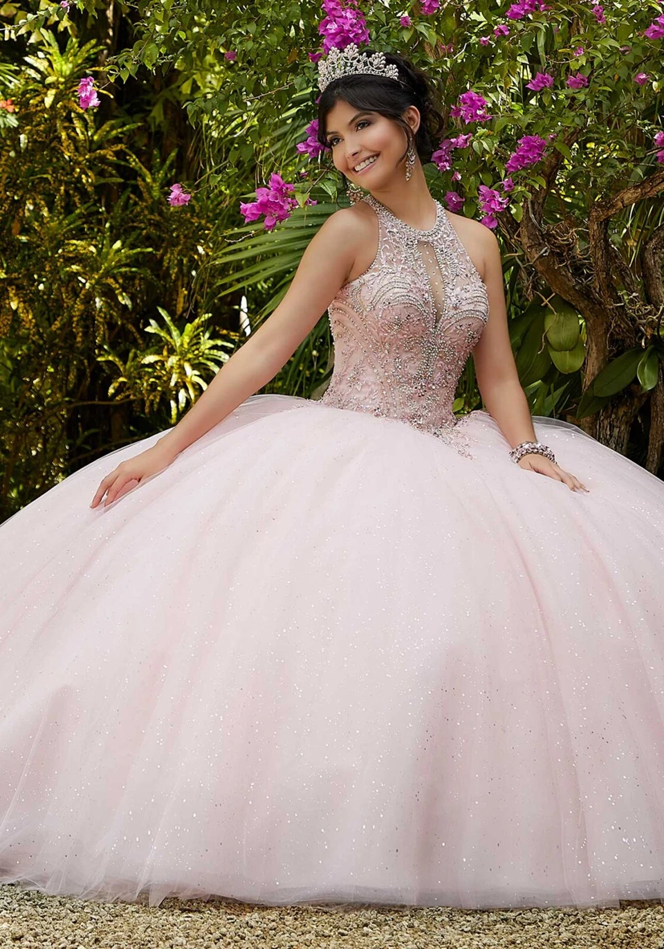 2023 розовое милое платье Quinceanera с открытыми плечами, бусинами, блестками, женское Тюлевое платье принцессы с открытой спиной, милое бальное п...