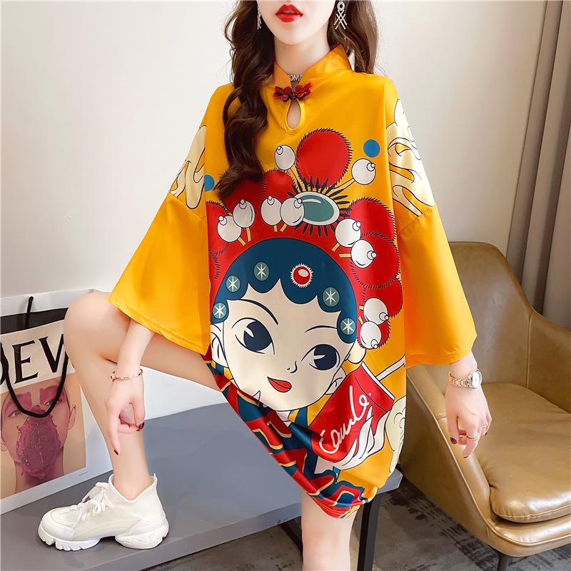 2023 Cheongsam Girl Новая Пекинская опера с принтом в стиле ретро Свободные повседневные платья для молодых женщин