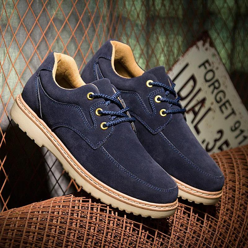 2024 Высококачественная мужская замшевая повседневная обувь в британском стиле на шнуровке на платформе Короткие ботинки Повседневная рабочая обувь на открытом воздухе с нескользящей подошвой 39 синий