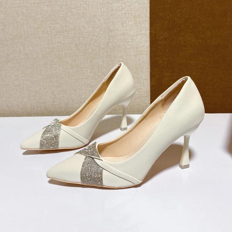 2024 Горячая Распродажа Универсальная Женская Обувь Украшенная Стразами Заостренный Носок Мелкий Рот Профессиональная Платье Slip-On Женская Обувь 34 бежевый