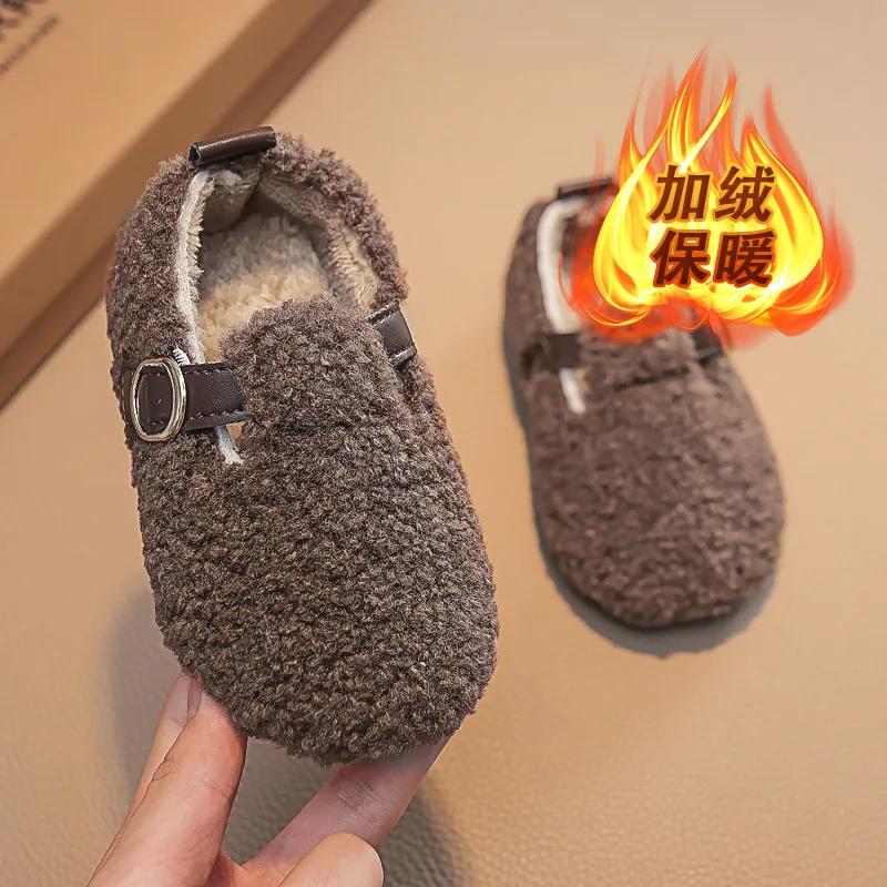2024 Детская плюшевая обувь для девочек, зимняя, новая мода, корейский стиль, мягкая подошва, нескользящая, повседневная, универсальная, шикарная, кожаная обувь 22