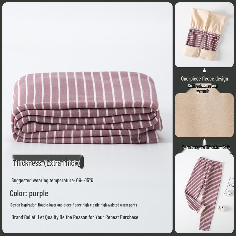2024 Детские велюровые теплые пижамные брюки в полоску: Утепленные брюки для мальчиков и девочек 100 cm