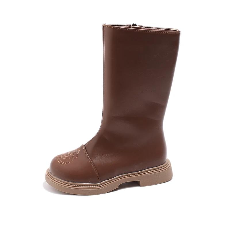 2024 Детские высокие ботинки для девочек Осень Новая мода Британский стиль Мягкая подошва Противоскользящие Универсальные Кожаные туфли 26 коричневый