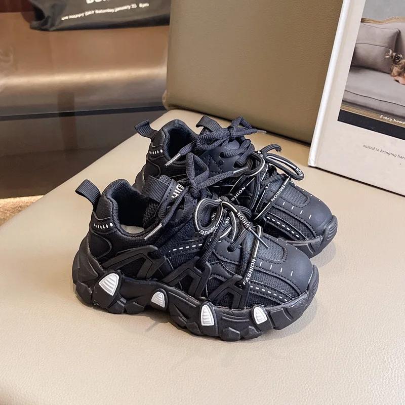 2024 Детские универсальные кроссовки для девочек и мальчиков, осенняя новая мода в корейском стиле, мягкая подошва, повседневная нескользящая спортивная обувь 27 чёрный