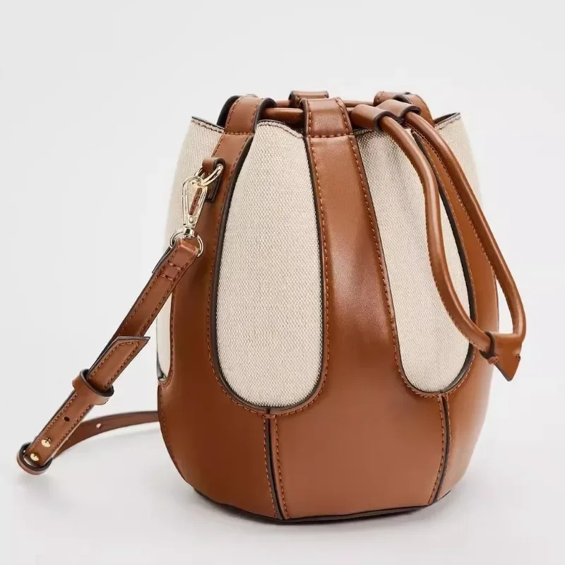 2024 Дизайнерская новая холщовая контрастная сумка для сращивания, большая вместительная роскошная ручная сумка-ведро на одно плечо для поездок на работу через плечо