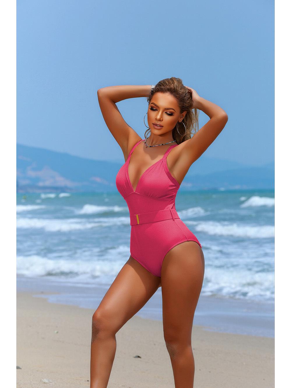 2024 Европейский и Американский Сексуальный Слитный Женский Купальник Однотонный с Пряжкой Модный Горячий Стиль Small красный