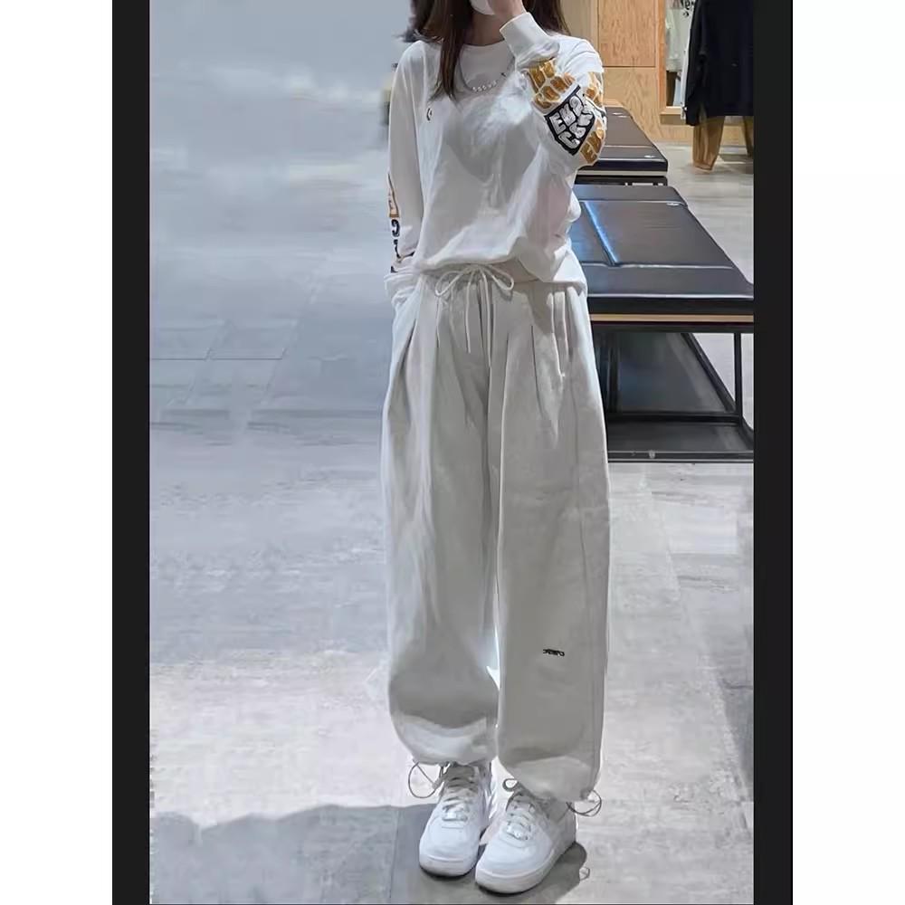 2024 Женские Весенне-Осенние Повседневные Серые Драпированные Свободные Леггинсы и Спортивные Штаны XXL
