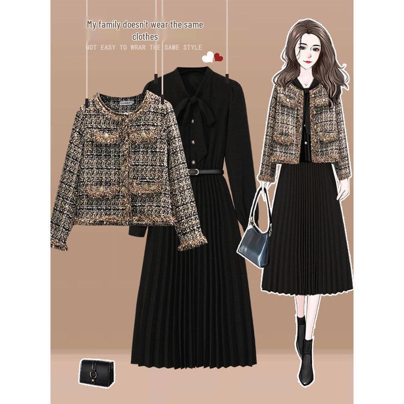 2024 Женский комплект кардигана и платья большого размера для похудения, из двух частей, осенне-зимний 4XL (180-200 jin)