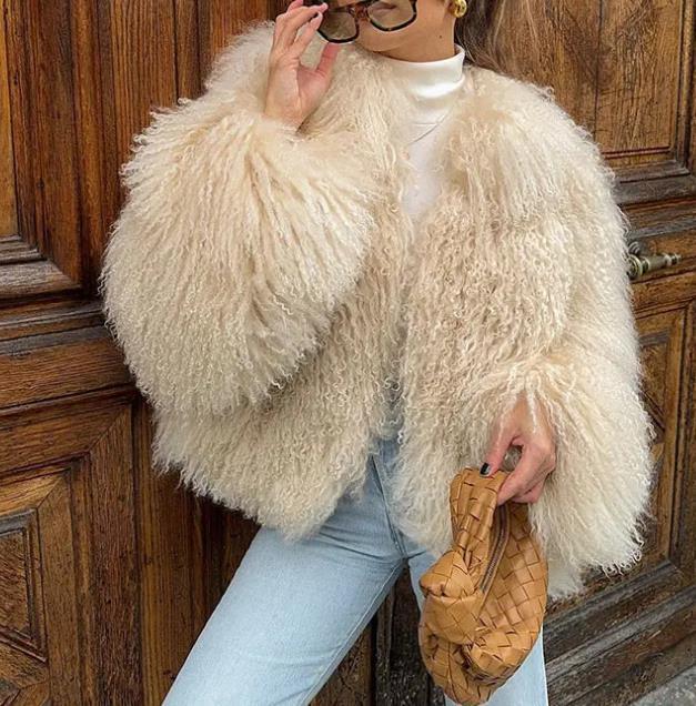 2024 Женское элегантное меховое пальто однотонной расцветки: Европейский и американский стиль, с длинными рукавами, зимнее тепло Medium хаки