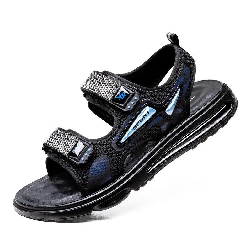 2024 Летняя сетчатая обувь, мужские сандалии на плоской подошве, летняя праздничная мужская обувь, нескользящая черная, синяя 39 синий