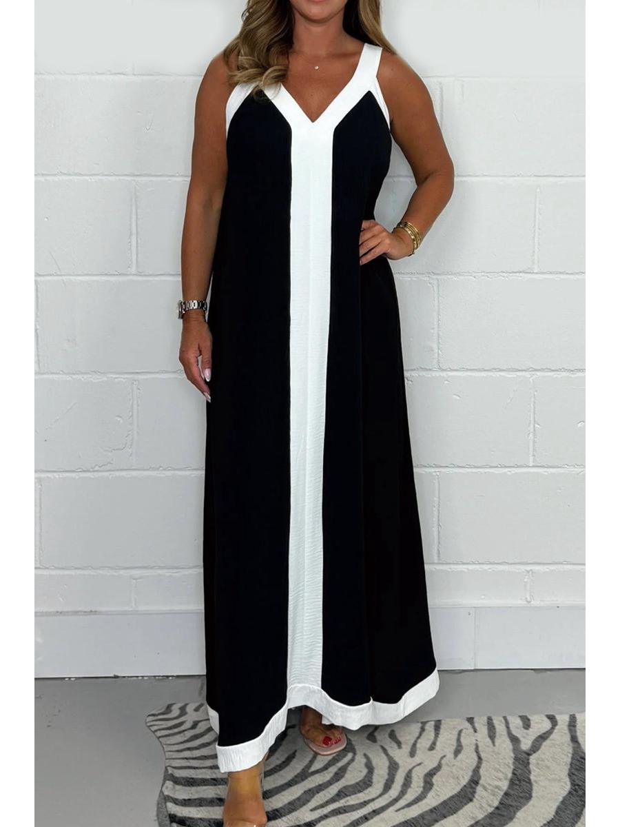 2024 Модное контрастное цветное V-образное платье без рукавов, длинное, свободное, женское 4XL