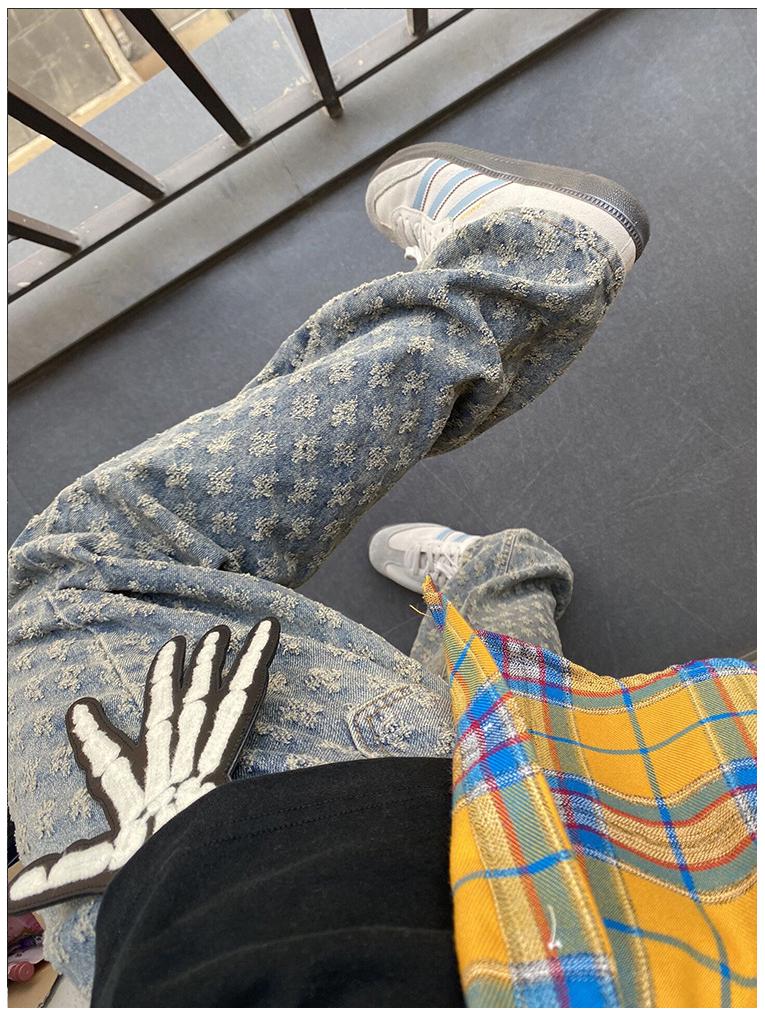 2024 Модные Панк Уличный Стиль Мужские Джинсы Скинни Жаккардовые с Принтом по Всей Поверхности и Микро-Клешем Large