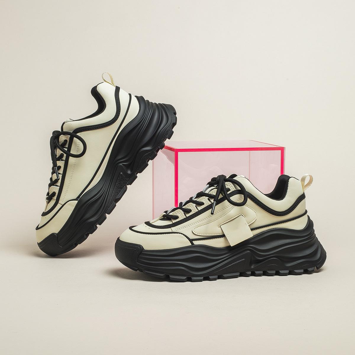 2024 Новая Мода Смешанные Цвета Женская Обувь на Платформе Все-сочетаемая Повседневная Спортивная Корейский Стиль Шнуровка Бежевые Кроссовки Осень Зима 35