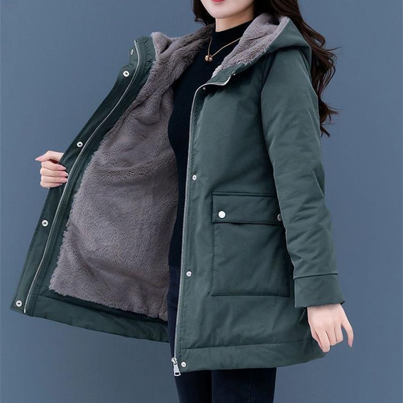 2024 Новая женская зимняя куртка-пуховик с капюшоном и бархатной подкладкой, повседневная теплая стеганая куртка для зимы, парка, свободная длинная женская куртка Overc 3XL зеленый лайм