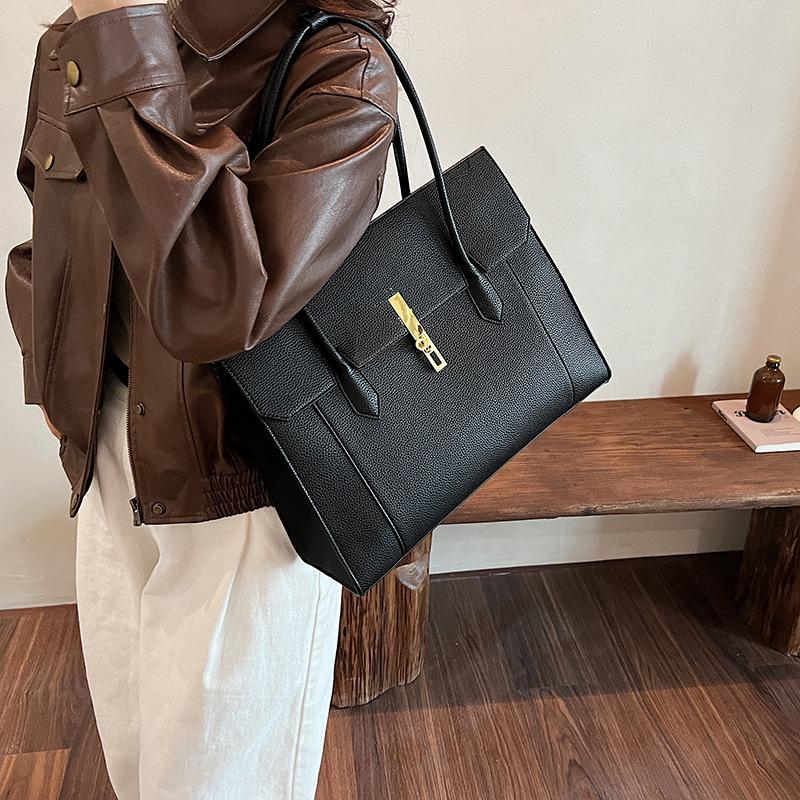 2024 Новая женская сумка Большая сумка на одно плечо Премиум практичная сумка портфель Портативная большая вместимость сумка-тоут для женщин 38*13*29 чёрный