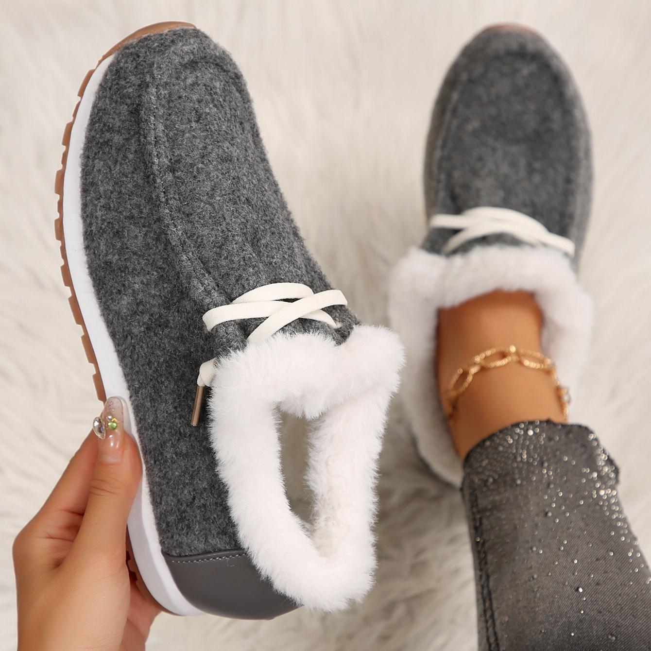 2024 Новая обувь из хлопка больших размеров на осень и зиму, женские ботинки из хлопка с круглым носком и шнуровкой, нескользящая плоская подошва с плюшевой хлопковой обувью 36 чёрный