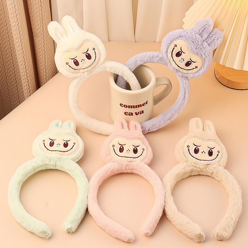 2024 Новая плюшевая повязка на голову Labubu, красочная, каваийная, мультяшная, для умывания, макияжа, повязка для волос, милый женский аксессуар для волос, подарки, головной убор 3