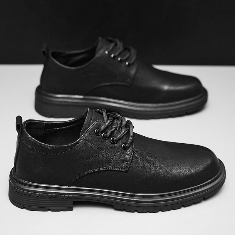 2024 Новые ботинки для альпинизма из коровьей кожи на шнуровке, мужская повседневная рабочая обувь, мужская повседневная кожаная обувь на осень и зиму, короткие ботинки 44 чёрный