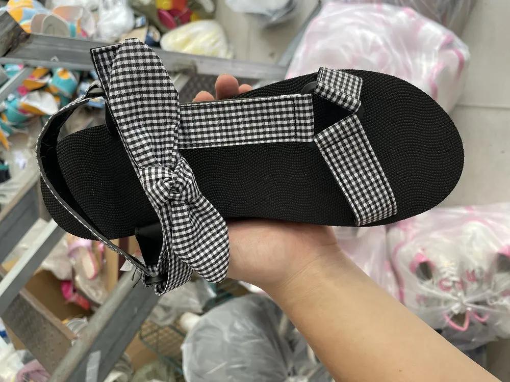 2024 Новые европейские и американские модные большие сандалии на плоской подошве женские пляжные туфли в клетку с бантом 39 чёрный