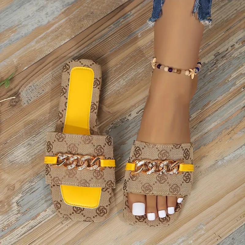 2024 Новые женские балетки, тапочки, летние, роскошные, для улицы, пляжные, женские сандалии, трендовые, дизайнерские тапочки, большой размер, шлепанцы, женские 43 жёлтый