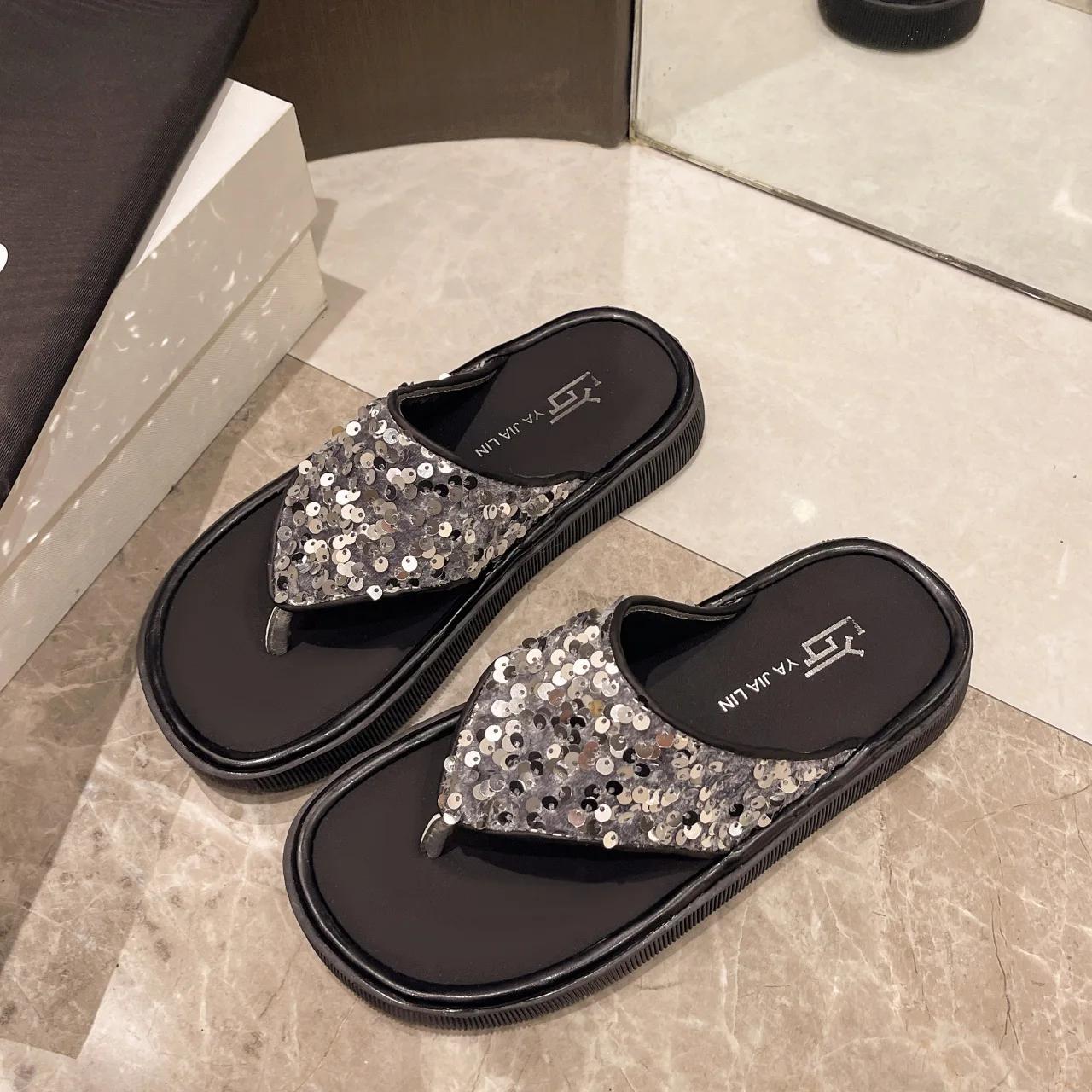 2024 Новые летние тапочки для женщин Модные универсальные шлепанцы Muffin на толстой подошве для женщин на пляже 35 серебряный
