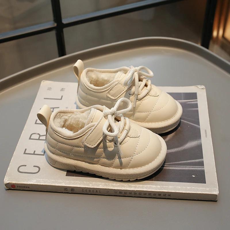 2024 Новые туфли на плоской подошве для девочек, модная детская повседневная обувь, однотонные детские мокасины на платформе, теплая хлопковая обувь, мягкая дышащая, симпатичная, из искусственной кожи 21 бежевый