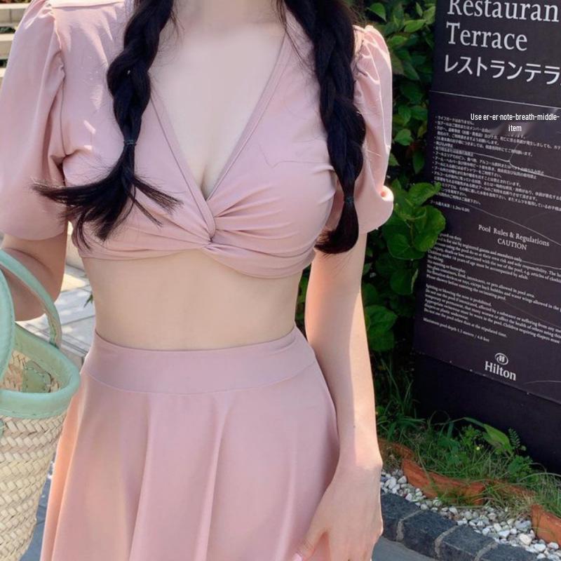 2024 Однотонный купальник с V-образным вырезом: Купальник с юбкой с разрезом для контроля живота Medium