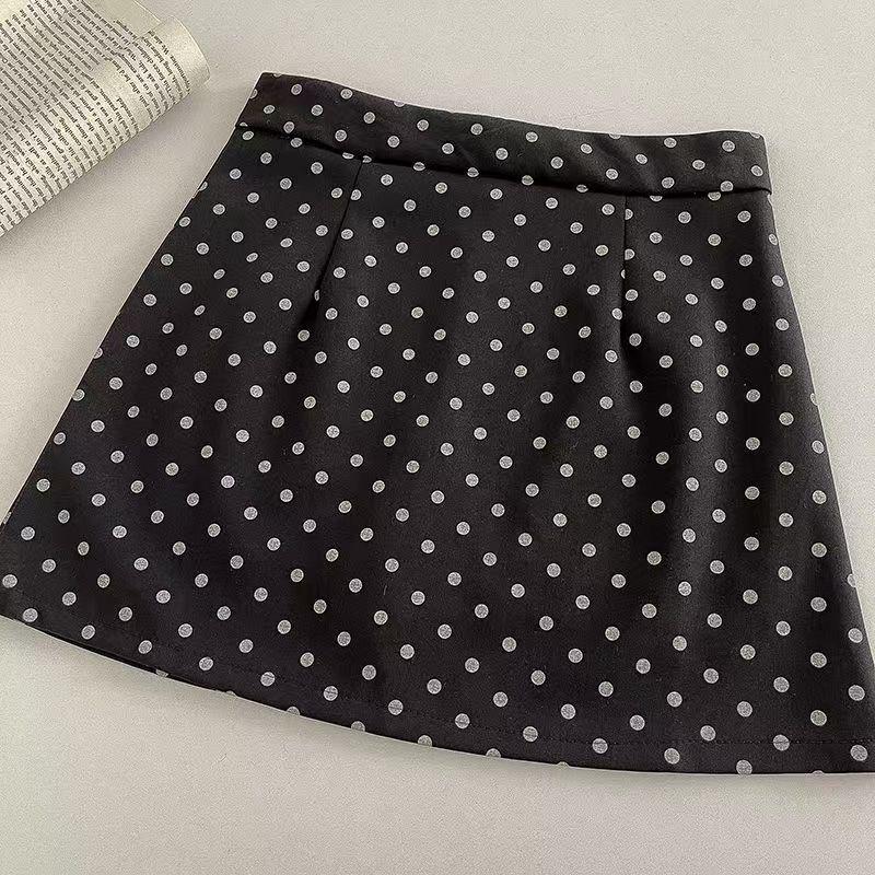 2024 Осенняя Мода Белая Юбка Миди А-силуэта в Горошек с Завышенной Талией и Асимметричным Подолом S