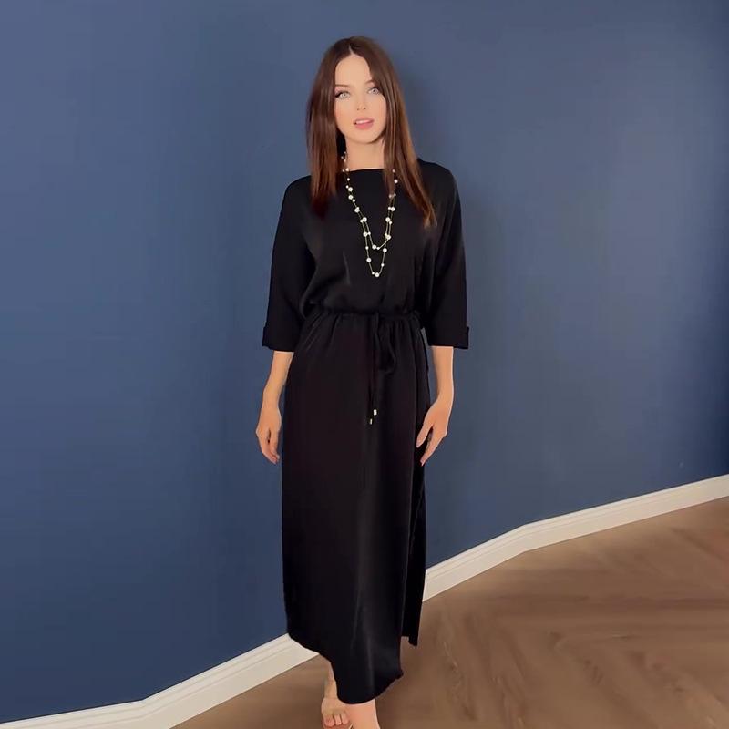 2024 Осень Евро-американский Однотонный Топ с Круглым Вырезом и Юбка Миди на Кулиске L чёрный