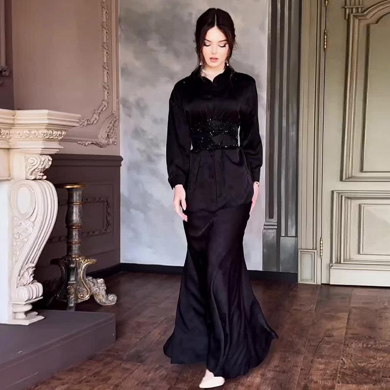 2024 Осень Женский Однотонный Элегантный Приталенный Комплект Длинного Платья с Завязкой на Талии XXXL
